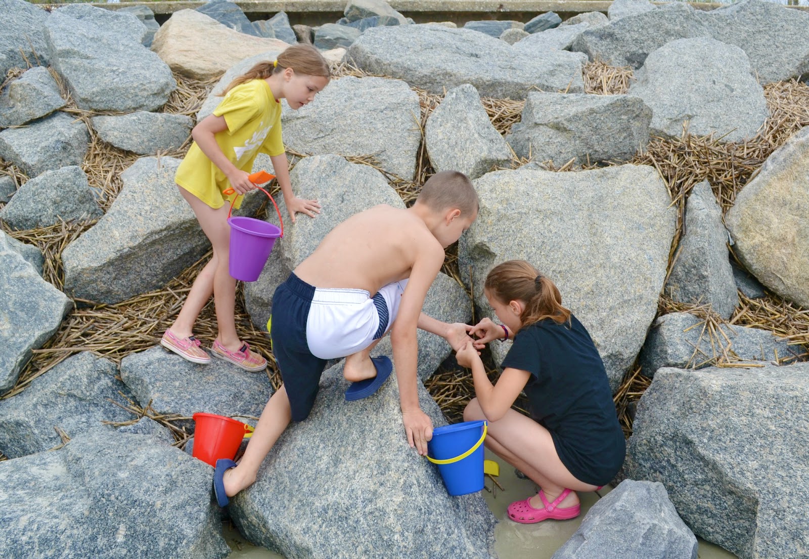 The next day was a bit windy and the water was definitely not safe, so the children decided to hunt for crabs amongst the rocks.